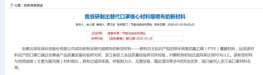 This report comes from Polaris Environmental Protection Network: On March 12, 2020, Niu Nutao, director of Anhui Province Economic and Information Department, and his party visited the company for research and guidance. Accompanied by Xu Hui, chairman of Yuanchen Technology, Liang Yan, general manager and his party, they visited the meltblown fabric production workshop, mask and protective clothing production workshop and nano-materials lamination production workshop. Director Niu affirmed the overall strength of the enterprise and appreciated the enterprise in independent innovation and major strategic decisions, especially for the nano film material was highly evaluated.